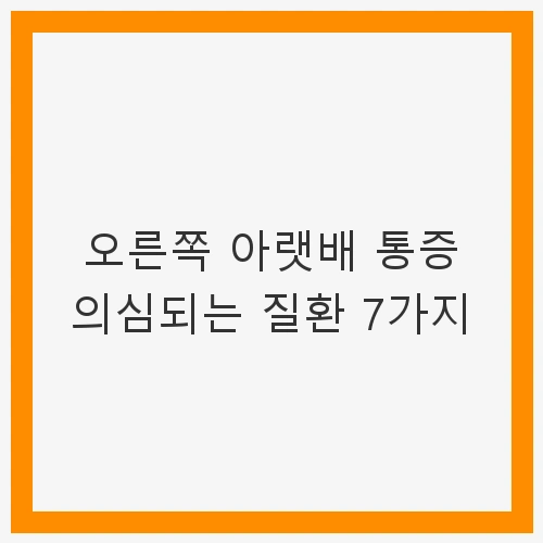 배가 아프면 대개 위장 질환부터 의심하게 됩니다. 그러나 통증이 발생하는 위치에 따라 다양한 질환을 고려해야 합니다. 특히 오른쪽 아랫배의 통증은 특정 질환과 관련이 깊기 때문에 주의가 필요합니다. 오늘은 오른쪽 아랫배 통증을 유발할 수 있는 7가지 질환에 대해 알아보겠습니다. 이 질환들은 많은 사람들이 무시하기 쉬운 증상으로 나타날 수 있지만, 빠른 진단과 치료가 필요한 경우가 많습니다.